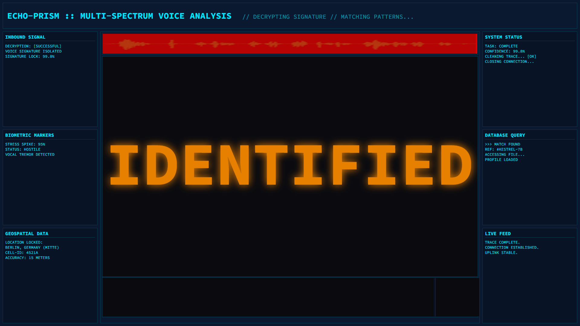 Beschreibung: CHO PRISM ist eine Simulation einer Geheimdienst Audio Analyse.